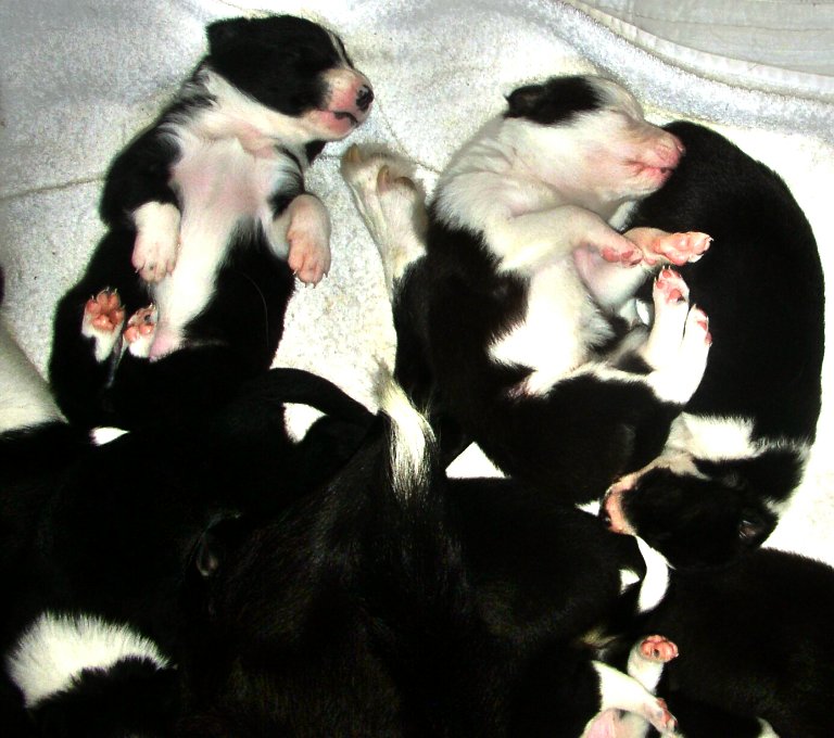 When all eight are seen together with Sally, the pups collective mass seems to be more than hers!